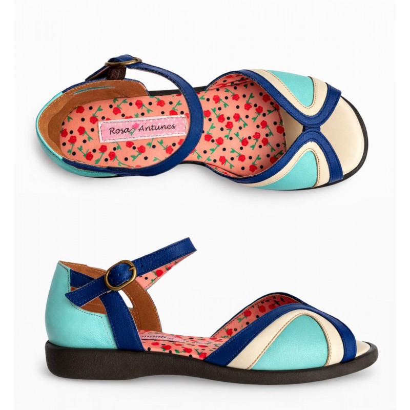 Sandalia em couro azul off white azul lago