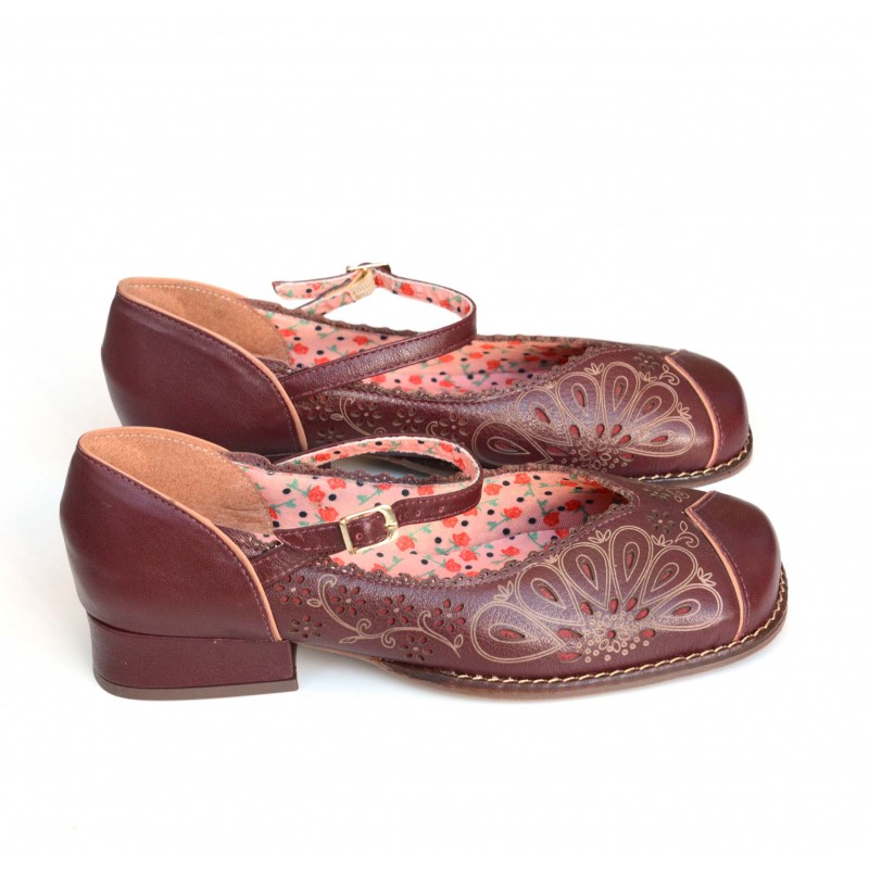Sapato Boneca retrô em couro com salto médio de altura 3 cm. Feito à mão. Solado em Borracha.